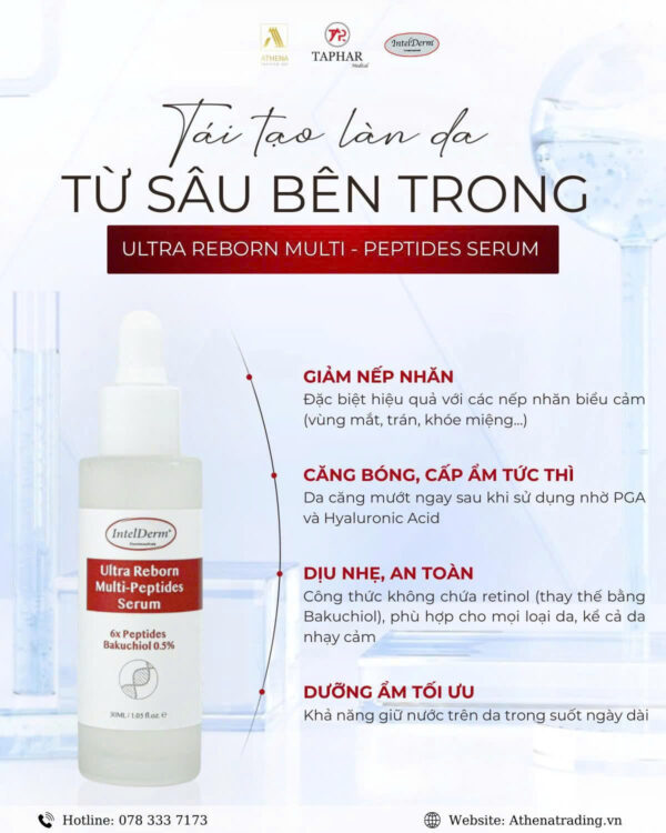 Thành phần chính: 06 loại Peptides , Bakuchiol , Polyglutamic Acid
